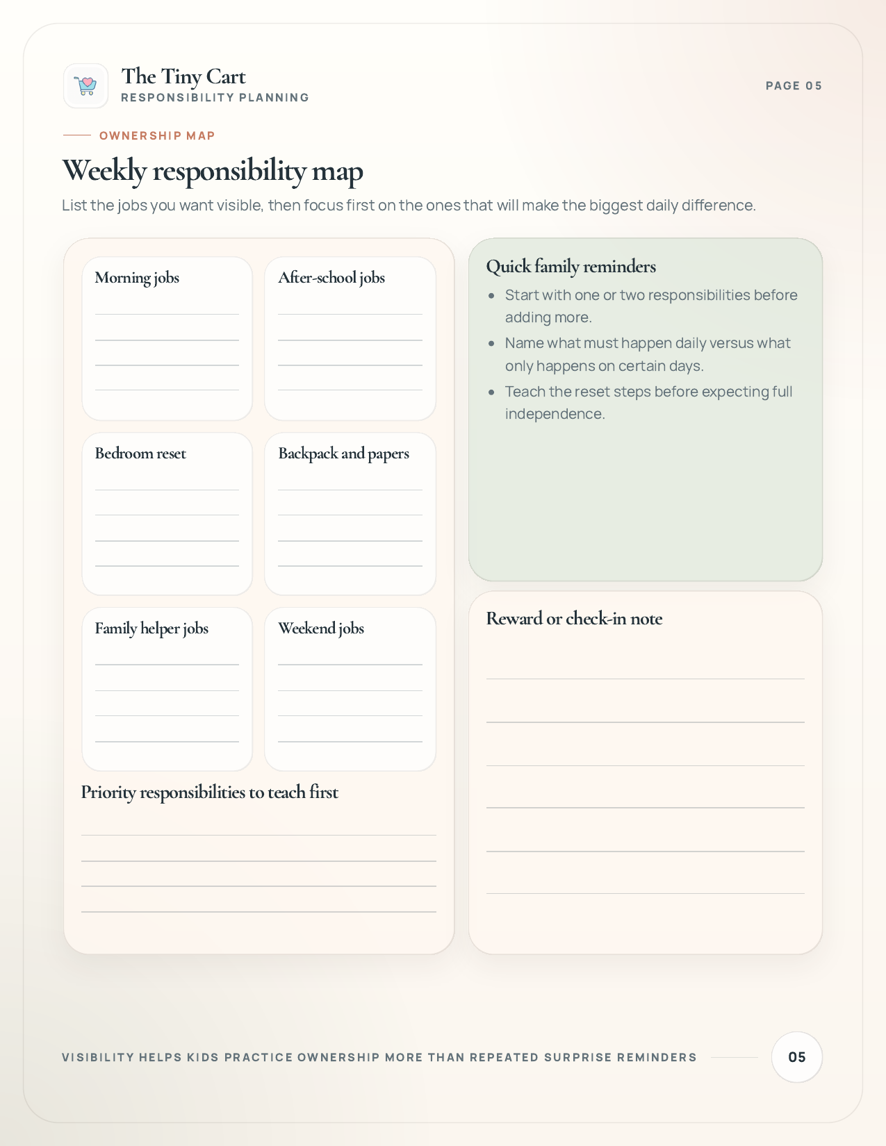 This pack moves from routines kids can see to responsibilities they can grow into.